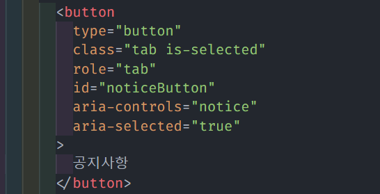 이것은 role이 tab인 요소의 내용물(패널)의 역할을 하는 요소이다. 라는 뜻