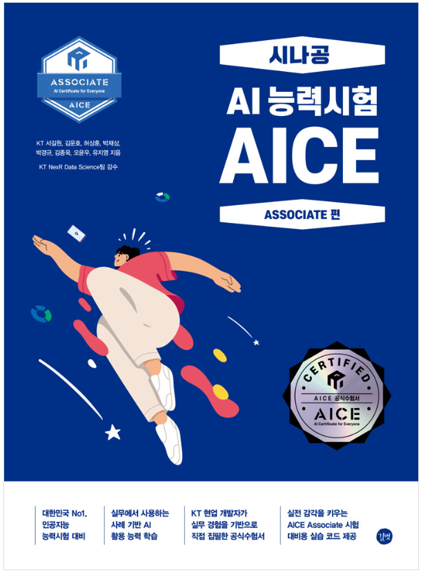 저는 ‘시나공 AI 능력시험 AICE Associate’를 실물책으로 구매하였습니다. (AICE 시험 대비 도서는 이거밖에 없어서 바로 1초만에 구매함 😶🌫️)