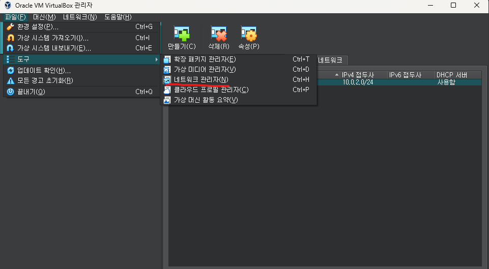 파일 > 도구 > 네트워크 관리자 > NAT 네트워크 > 만들기