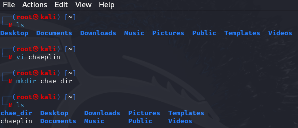 위와 같이 홈 디렉토리에 있던 chaeplin 파일이 없어지고, chae_dir 디렉토리 안으로 이동한 걸 확인할 수 있다.