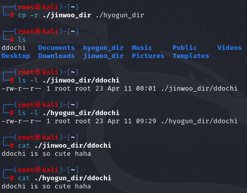cp -r /root/jinwoo_dir /root.hyogun_dir // 절대경로