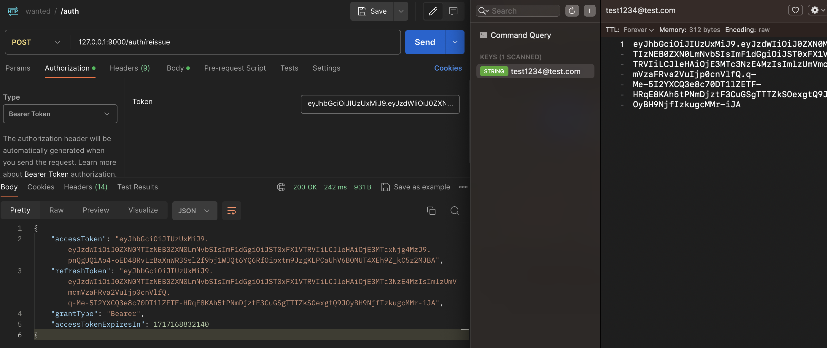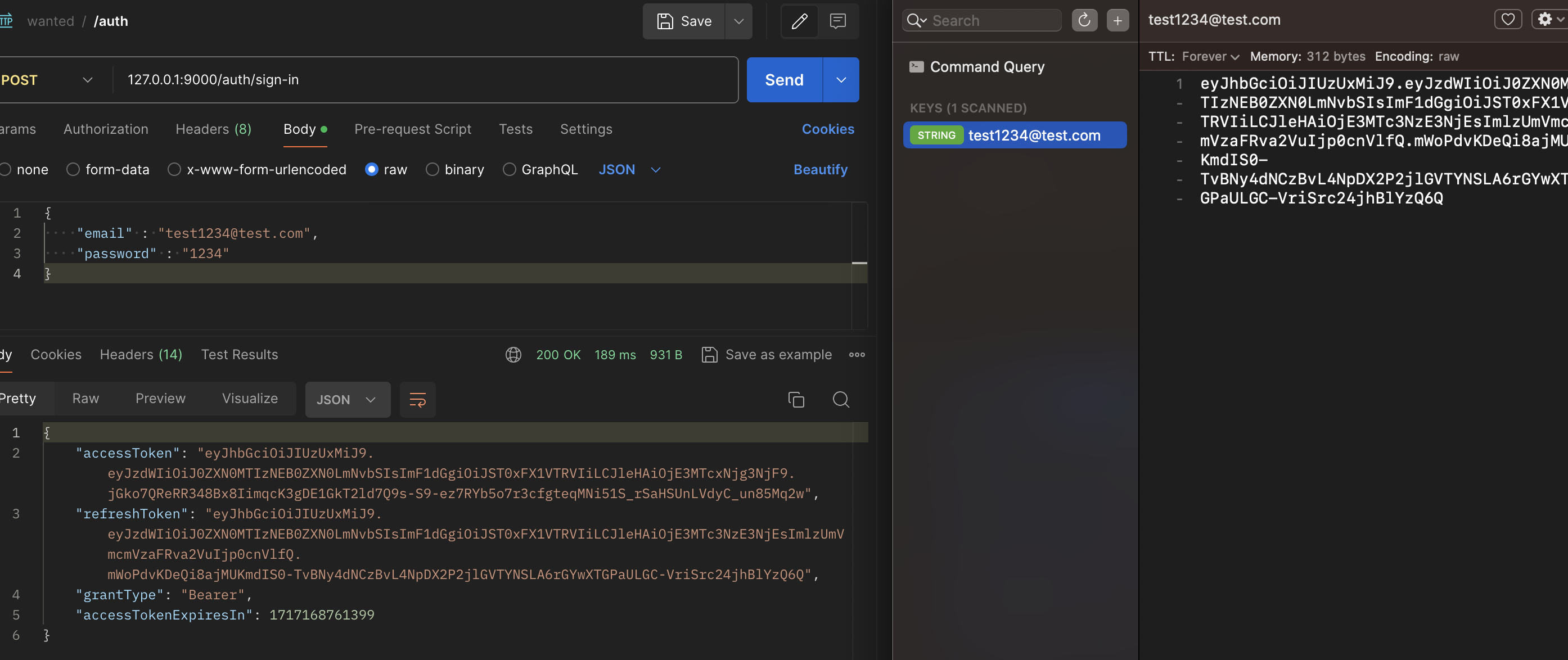 이렇게 스프링 시큐리티와 JWT, Redis를 사용해서 회원가입/로그인/토큰 재발급 API를 구현해보았다.