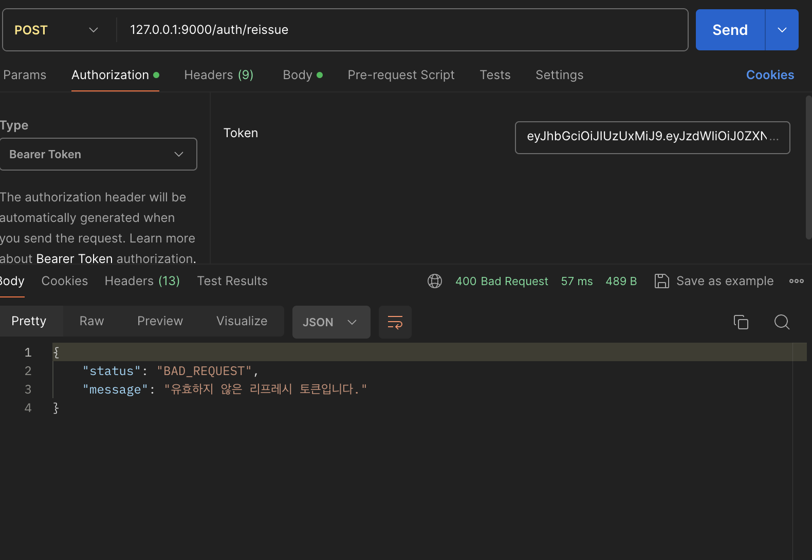 의 유효성을 검사한다.InvalidRefreshTokenException