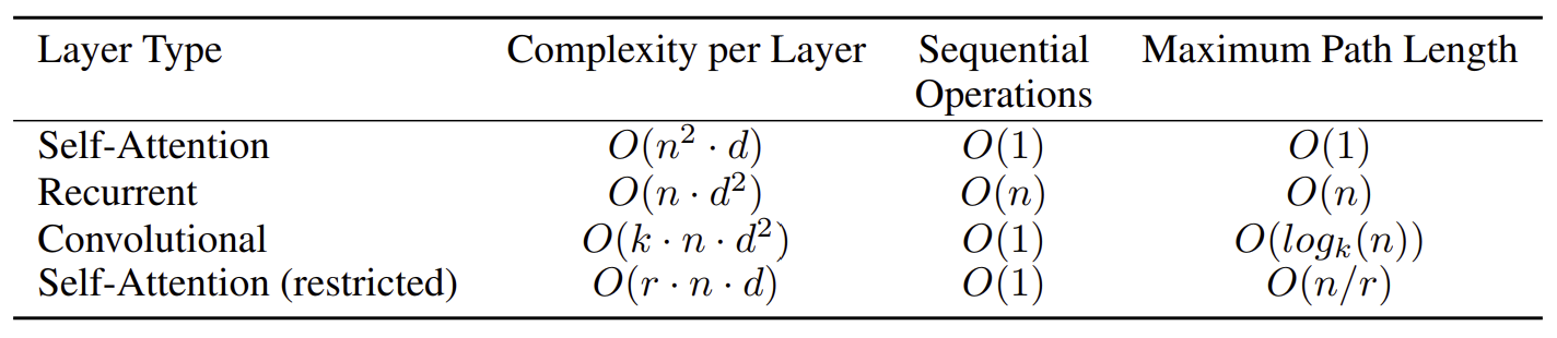 The table below compares self-attention, recurrent, and convolutional layers in terms of their efficiency and ability to model long-range relationships. Here’s why self-attention stands out: