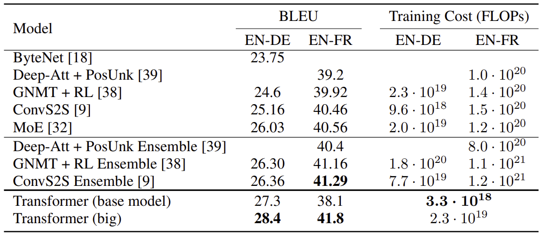 Even the base model outperformed previous RNN and CNN models at far lower training cost.