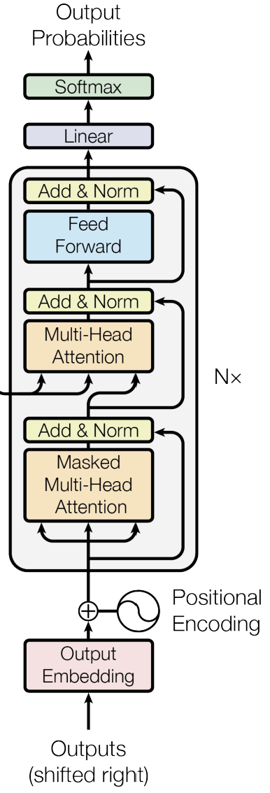 At the beginning (bottom of the figure10), the output embeddings are added to positional encodings.