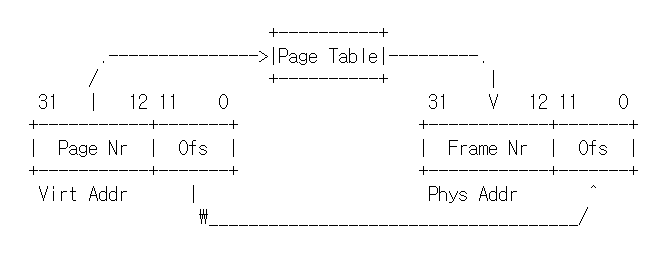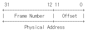 32bit 운영체제에서 물리 메모리 주소의 크기는 32bit이며, 이중에서 20bit는 페이지 번호로 사용하고, 12bit는 오프셋으로 사용합니다.