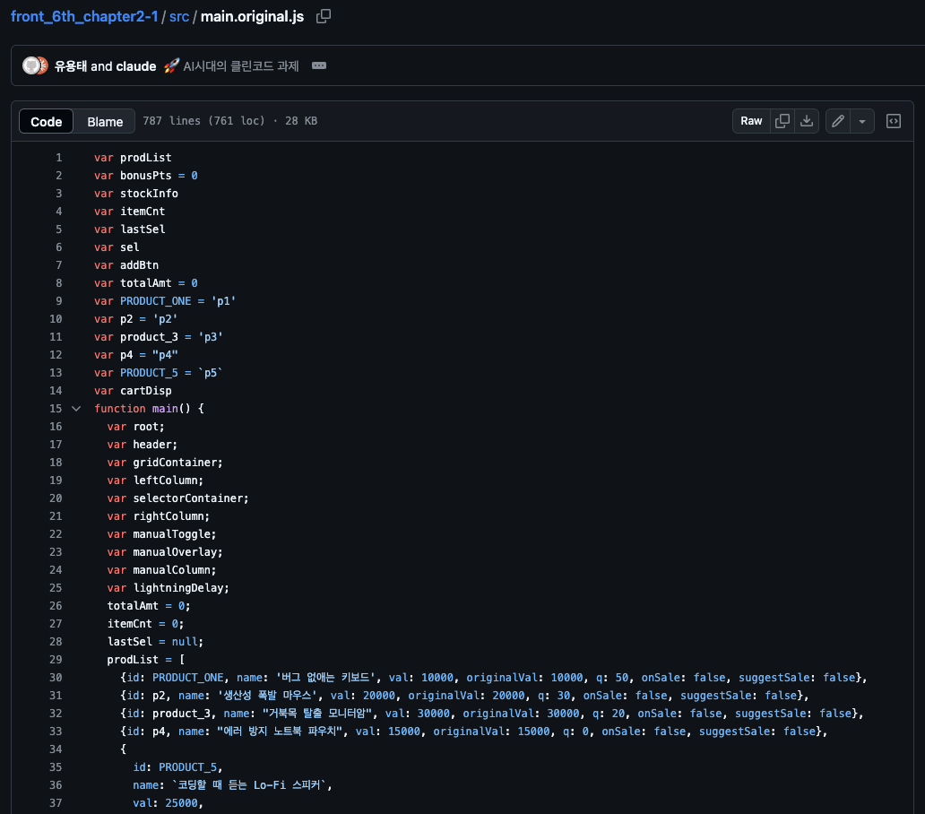 그리고 700줄 넘는 한 파일에 모든 로직이 들어있고, 중첩된 for문 지옥, 매직 넘버 천국, 전역변수 남발... 정말 모든 안티패턴의 집합체였습니다.