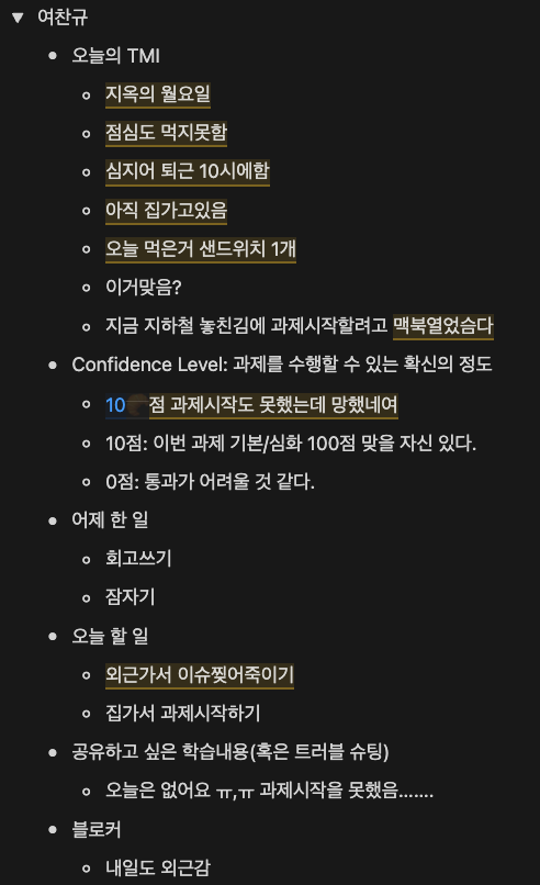 월요일 아니어도 이번 주차는 시간이 너무 부족해서 출퇴근 지하철에서도 맥북을 열어서 과제를 진행했고 점심시간도 밥 안 먹고 시간 내서 했던 것 같네요... 😇