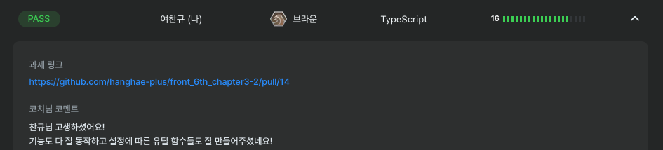 아직 TDD가 완전히 익숙해지지 않았지만, 이번 경험을 바탕으로 앞으로도 계속 연습해서 실무에서도 활용할 수 있는 수준까지 끌어올리고 싶습니다!!