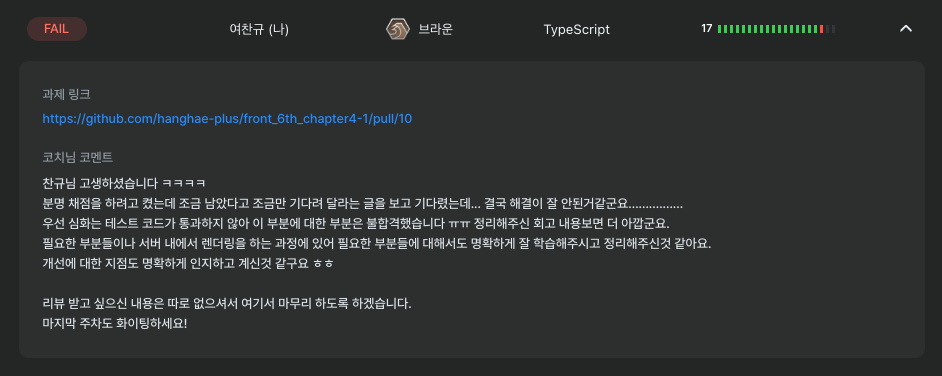 열심히 했지만 결국 심화과제에서 e2e 테스트 통과를 못해서 아쉽게 통과하지 못했습니다 ㅠㅠㅠ