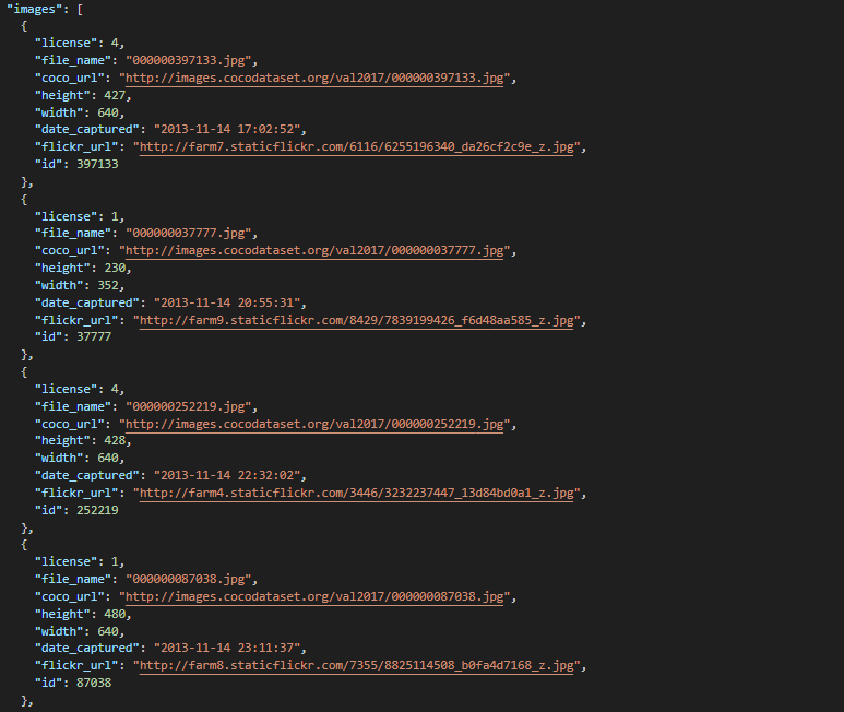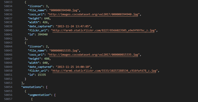 후반부에는 이미지에 대한 annotaions을 제공한다. Bbox와 segmentation points등