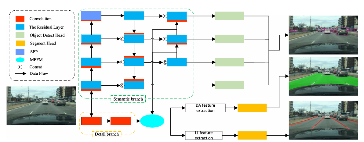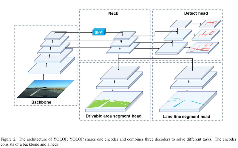 이미지에 대한 Multi-Task를 목적으로 하는 작업들은 대부분 detection과 segmentation 작업을 합치는 것으로 자율주행에서는 차량과 사람 등에 장애물에 대한 BBox를 구하고 Line Lane과 Drivable Area에 대한 Mask들을 추출한다.