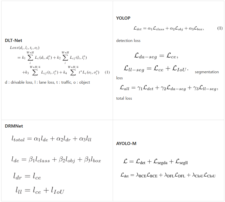 ( Loss_1 : Detection loss, Loss_2 : Drivable area loss, Loss_n : Lane line loss <- 부여된 값 예시 )