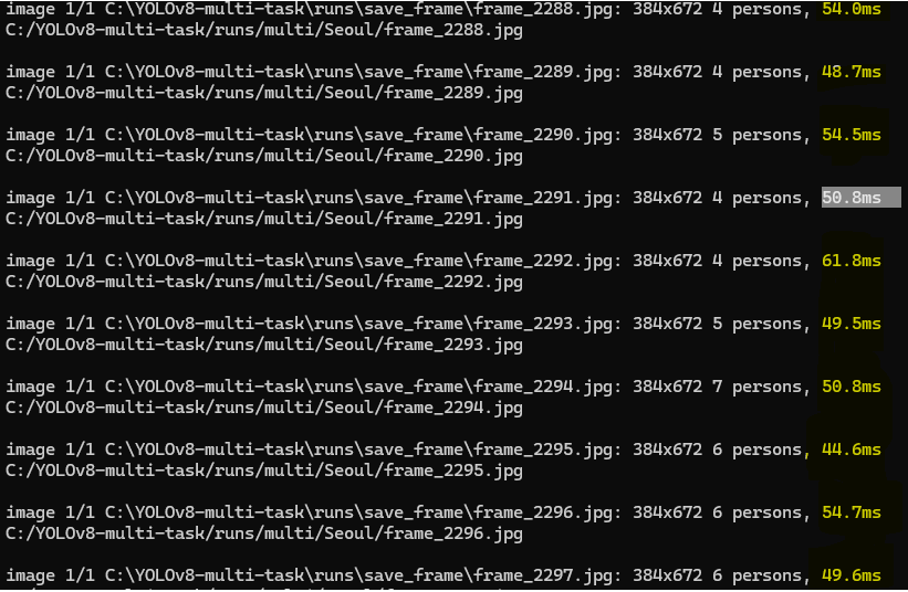 frame당 순수한 예측 작업은 평균적으로 50ms 초중반대가 나온다.