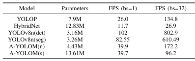자율주행 관련 연구에서 High precision, lightweights, real-time responsiveness는 필수 요건으로 Detection, Segmentation작업을 동시에 처리하는 A-YOLOM 모델을 설계하였다.