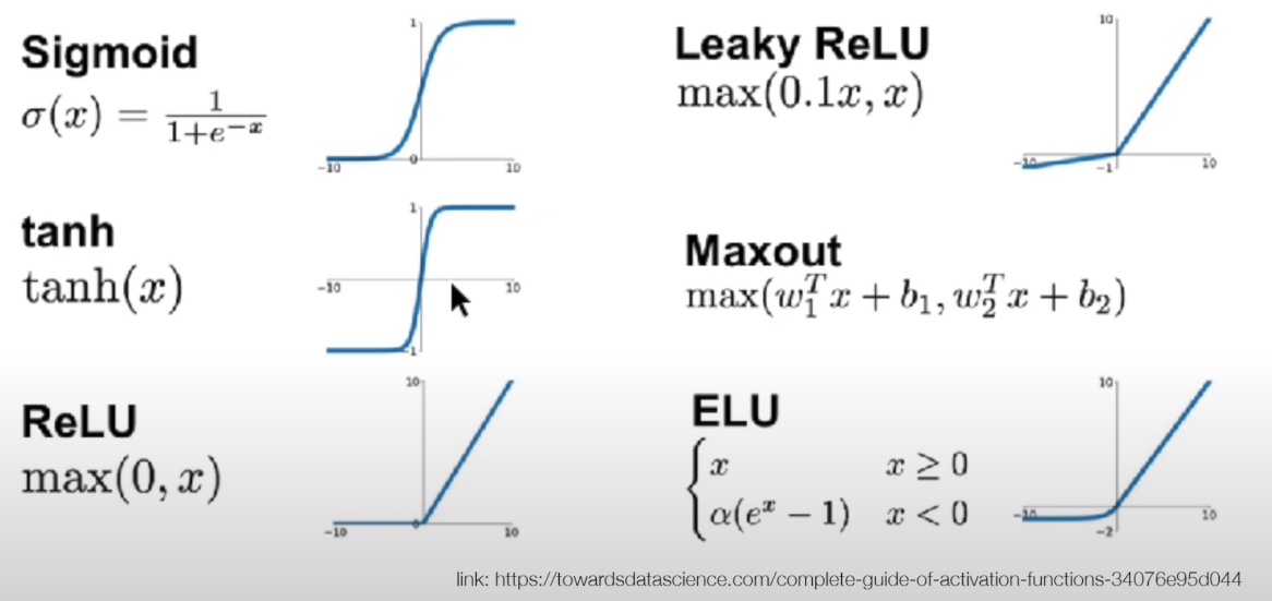 - Activation function : 이전 layer의 노드값이 다음 layer로 넘어갈 때 활용되는 함수