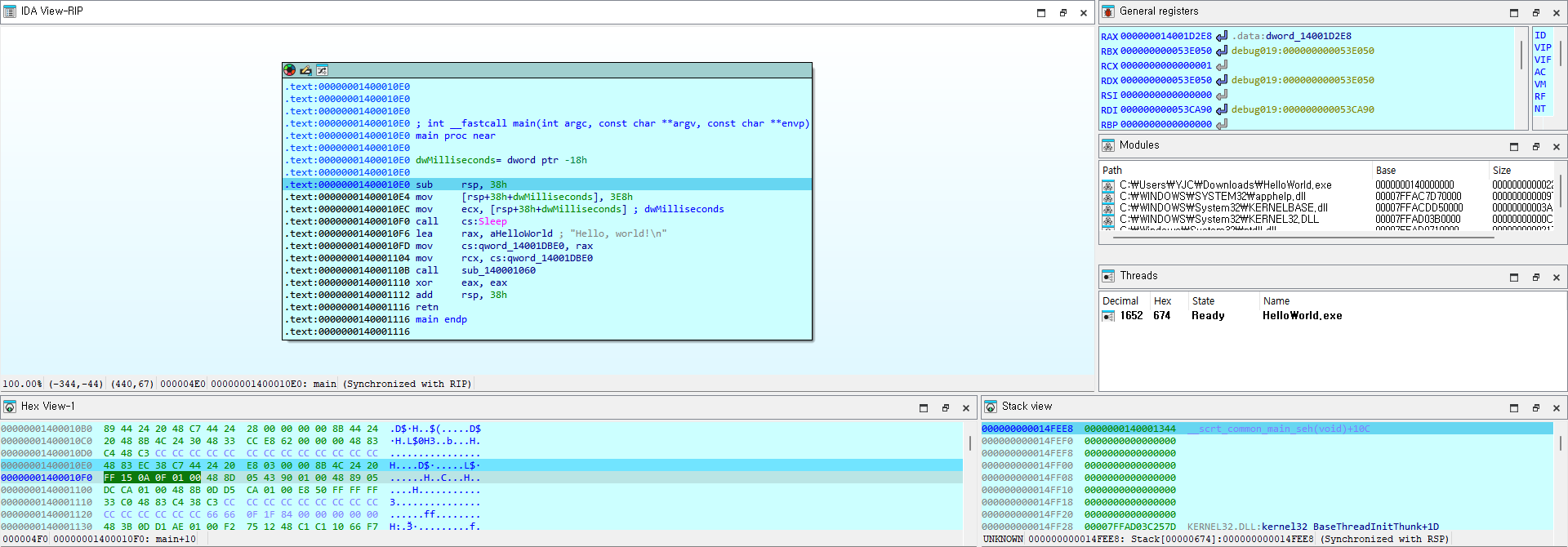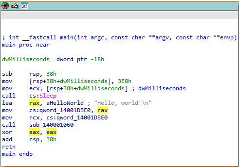 첫 번째 항목을 더블 클릭하면 main 함수를 찾을 수 있음