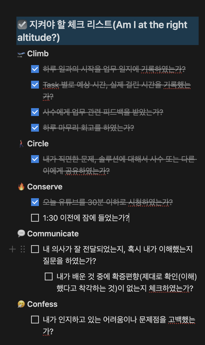 업무 일지 체크리스트