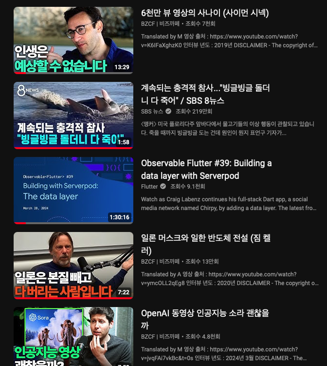 거의 1년 간 이런 영상만 봄.