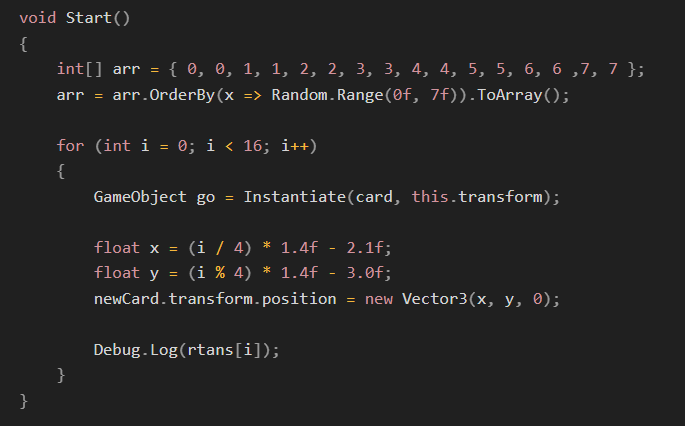 애니메이션을 이용해서 스케일 0부터 회전하면서 카드가 등장하도록 하였다.