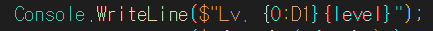 "D"또는 "d" 모든 숫자 형식이 가능하다. string str = string.Format("{0:D4}", 22); // 0022