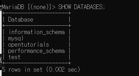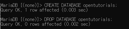 MariaDB> CREATE {DATABASE | SCHEMA} [DATABASE의 이름];