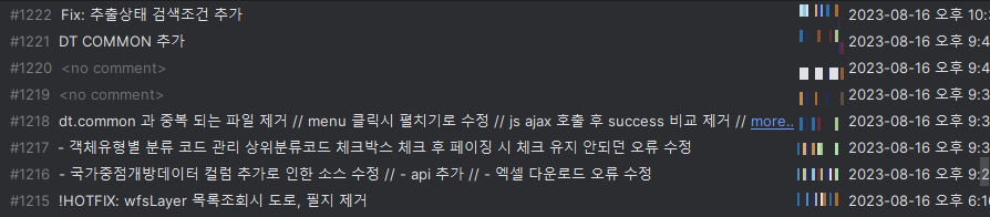 최근에 회사에서 진행했던 프로젝트에서 여러 팀원들의 커밋 메시지를 살펴보면 명확히 정해진 커밋메시지 없이 커밋한 분들이 많아서 아무 메시지 없이 커밋한 것도 보이고, 너무 많은 수정을 하고 한 번에 커밋한 분도 계셔서 기록과 추적에 용이하지 않았습니다. 이렇게되면 항상 문제가 생겨 되돌아볼때 오래걸리고 본인 조차도 어디서 수정했는지 잘 모르게 됩니다.