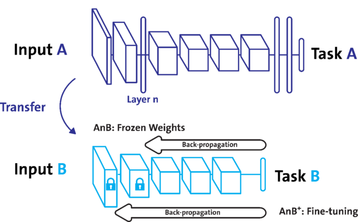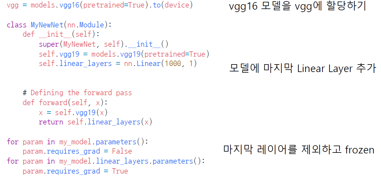 여기서 기존 모델에서 특정 부분까지는 weight가 변하지 않게 조작하는데, 그것을 Freezing이라고 함.