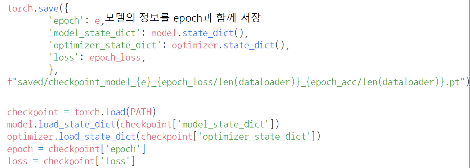 일반적으로 epoch, loss, metric을 함께 저장하여 확인