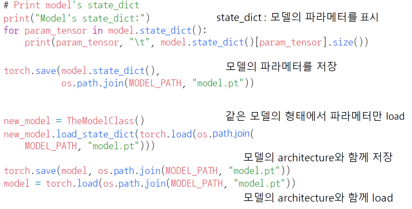 일반적일 경우는 파라미터를 저장하고, architectur는 코드로 공유를 함