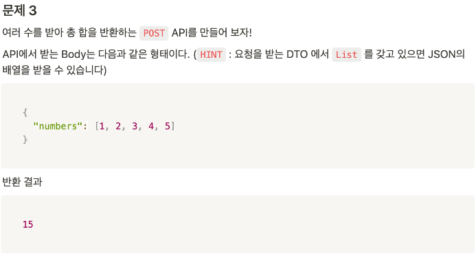 1,2 번 API 개발시에 원래는 입력받는 부분을 @RequestParam이 아닌 객체로 만들고 하는 방법도 있는데 문제에서는 입력값이 주어져 있어서 그냥 Param으로 받아서 해결했다.