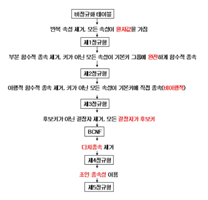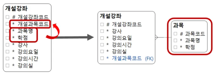 - 후보 식별자 속성과 일반 속성 간의 종속성을 판단하여 처리한다.