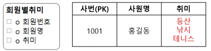 - 중복된 데이터 때문에 데이터에 의도하지 않은 현상이 발생되면 이를 이상현상이라고 한다.