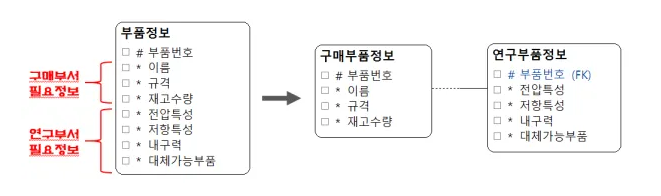 있으며 수평분할 된 엔터티는 속성은 동일하지만 서로 아무런 관계도 성립하지 않는다.