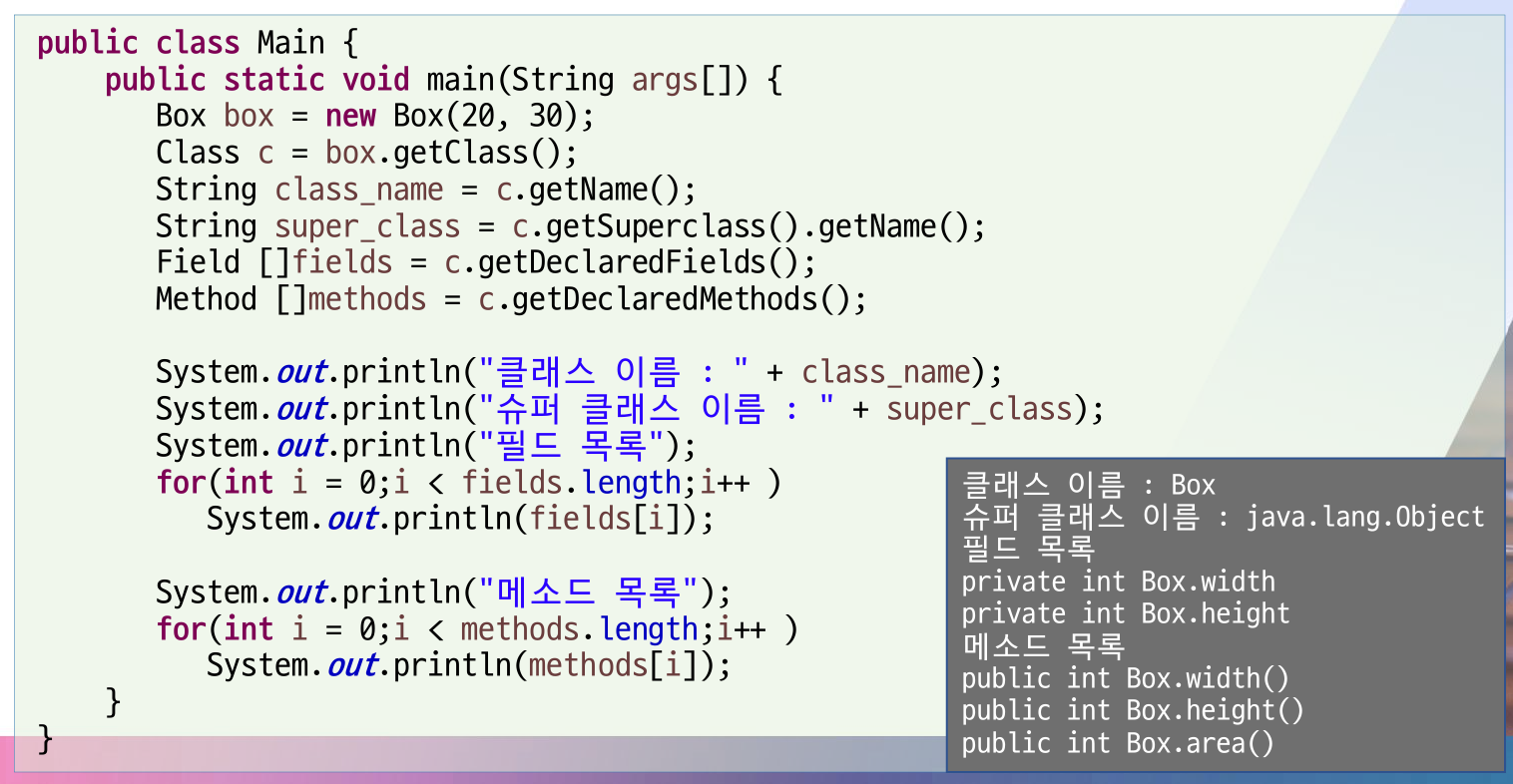 getClass() 메소드Class 객체를 리턴함