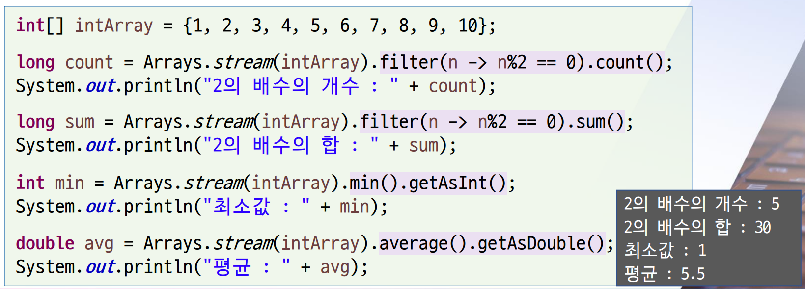 // 정수 배열 스트림