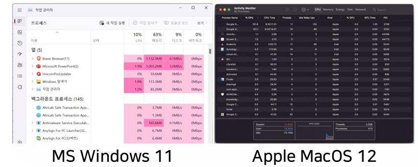 - 유틸리티: 부가적인 기능을 제공하여 컴퓨터를 편리하게 사용할 수 있도록 지원