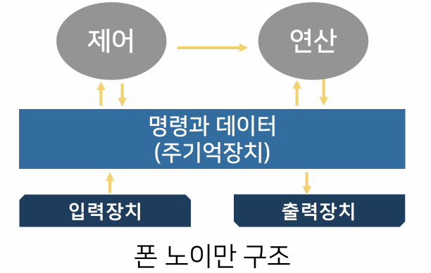 - 현대의 컴퓨터는 제어 장치와 연산 장치 구분❌