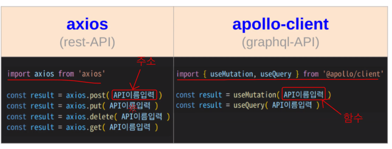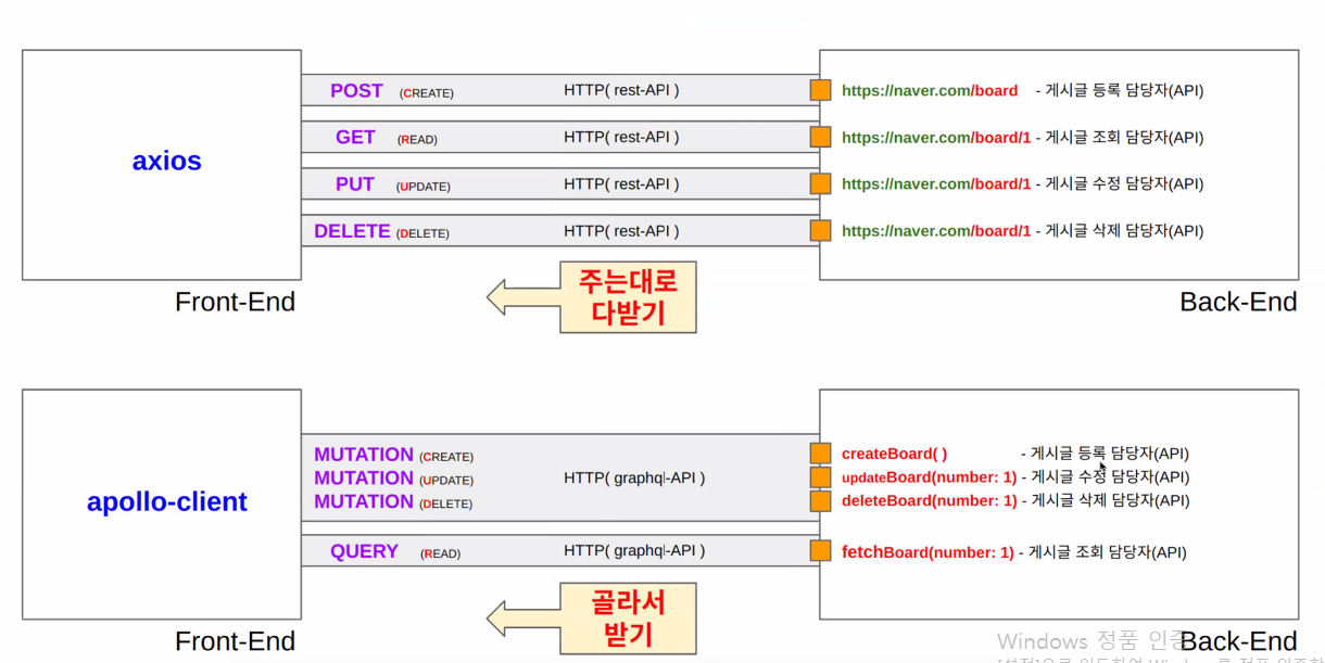 생성,수정 삭제는 DB의 정보를 변경하지만 조회는 변경하지 않기 때문에 apollo-client에서 두개의 명령어로 다룰 수 있다.