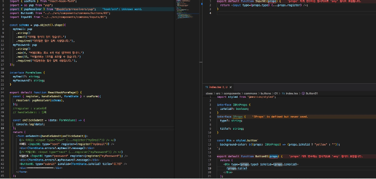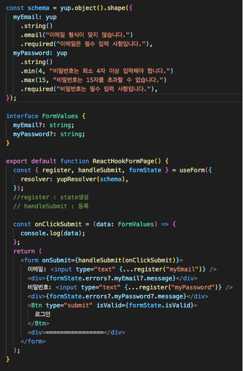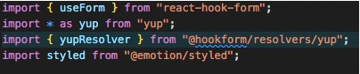 yarn add @hookform/resolvers // hookform과 yup을 함께 사용하기 위해 설치하는 라이브러리