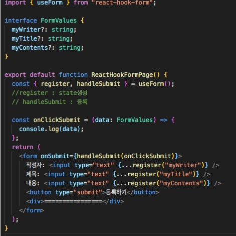 단, react-hook-form에서 form태그를 사용해도 데이터를 전송하거나 하지는 않음
