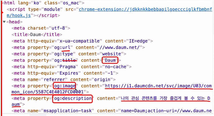 페이지를 구성하는 요소 중 속성에 og가 있다면 해당 데이터를 불러올 수 있도록 구성