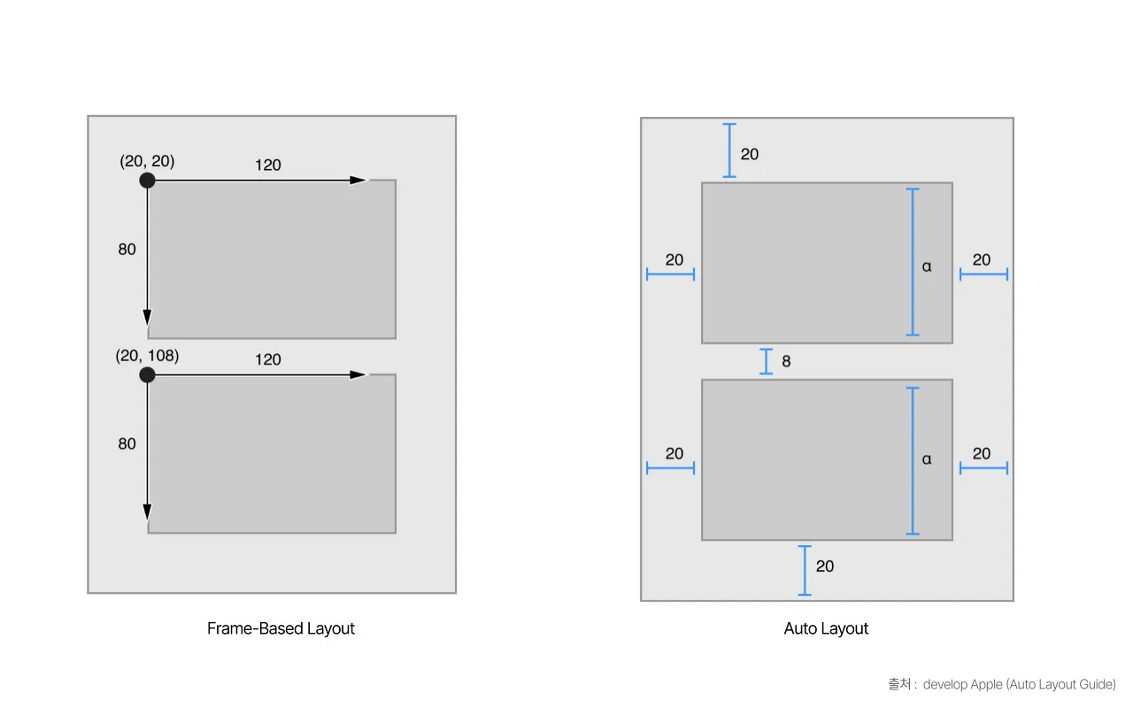 Auto Layout은 뷰 간의 관계(Constraint, 제약조건) 을 기반으로 레이아웃을 계산