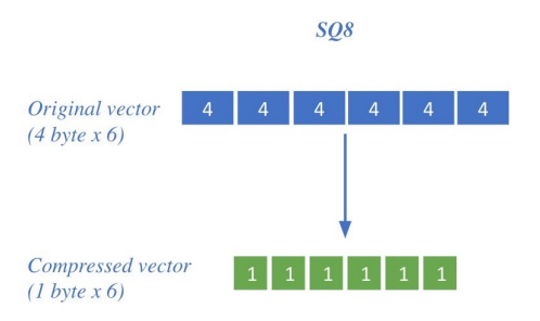→ 원본 벡터가 8개의 discrete 값을 갖는 SQ8 quantizaed vector로 표현됨