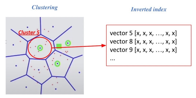 즉 중심 벡터를 찾으면, 그와 연결 된 해당 군집의 다른 벡터들과 search 가능