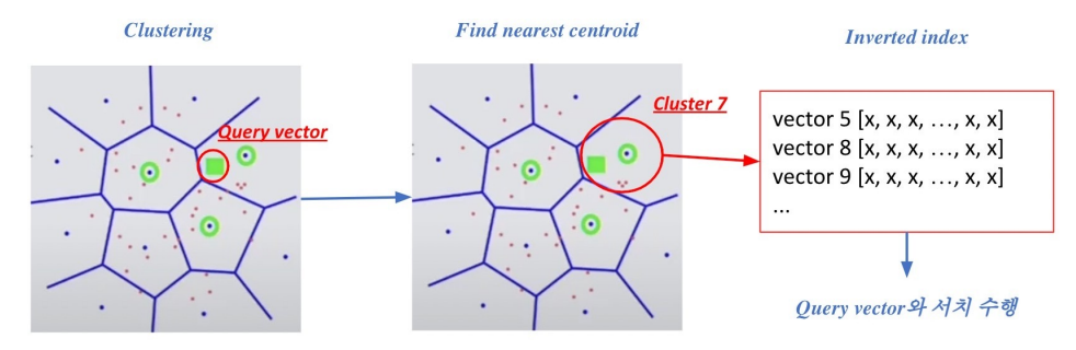1) 주어진 query vector에 대해 근접한 centroid vector를 찾음