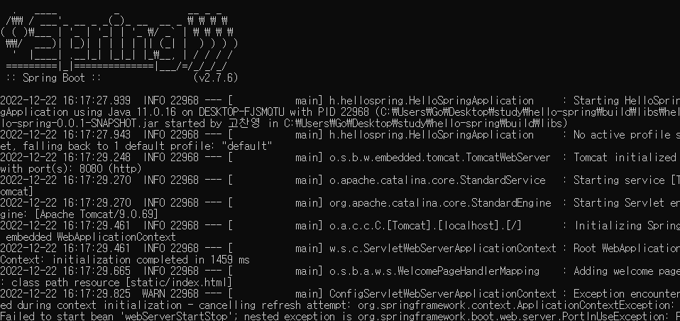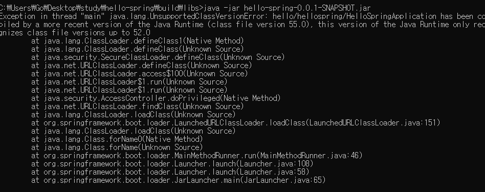 cmd에 java -jar hello-spring-0.0.1-SNAPSHOT.jar 할때 오류가 뜰 때가 있는데