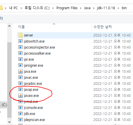 위에 주소를 따라서 javaw.exe 랑 연결 시켜주면 java랑 연결 된다.