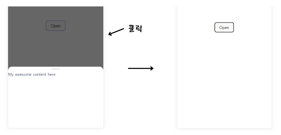 이 프로퍼티는 컨트롤되며, 만약 open을 false로 설정하지 않으면 Bottom Sheet를 닫을 수 없습니다.